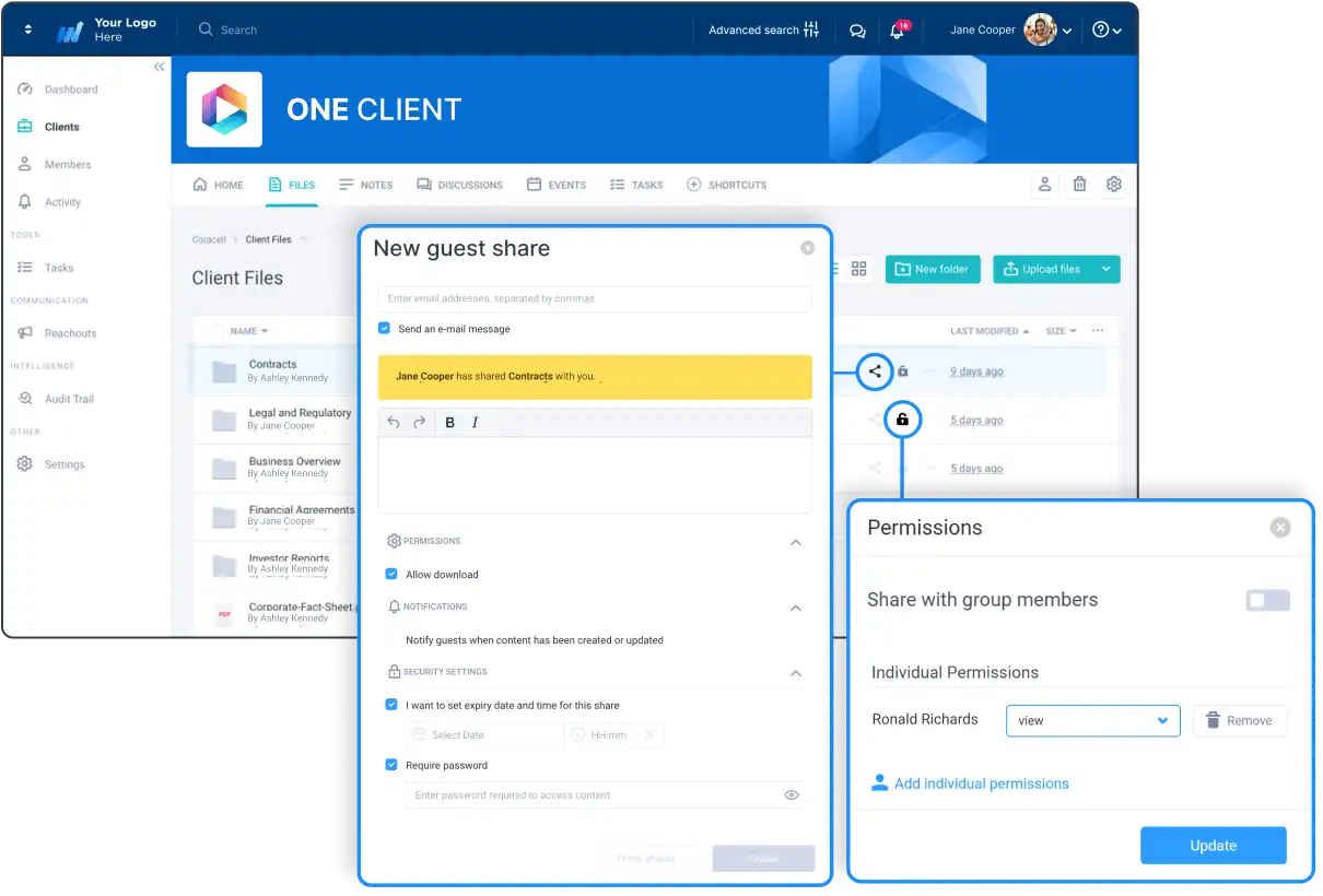 Impress clients with Clinked’s white-label options. Match your portal with your corporate branding for a cohesive experience.